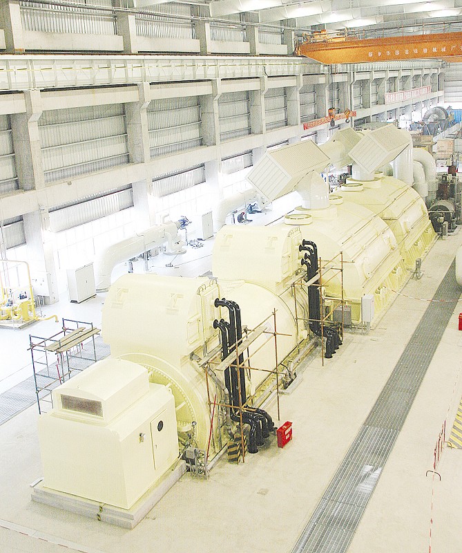 11月21日凌晨3时16分,国电蚌埠电厂2×600MW机组1号机组正式投产前的重要节点目标——— 汽轮机冲转一次成功,顺利达到3000转/分钟,各项试验参数均达到设计规范要求,调试运行稳定。 技术人员介绍,汽轮机是发电机组的三大主机之一。通过锅炉加热产生的高温高压气体进入汽轮机后,带动汽轮机高速运转,转动的汽轮机将带动与之联动的发电机转轴,最终产生电能。 1号机组汽轮机冲转一次成功,标志着国电蚌埠电厂向1号机组年底前高标准达标投产目标又迈出了坚实一步。目前,电厂正在抓紧设备消缺和各项试验工作,为下一步实施整套启动,进而开展“168小时试运”做好充分准备。