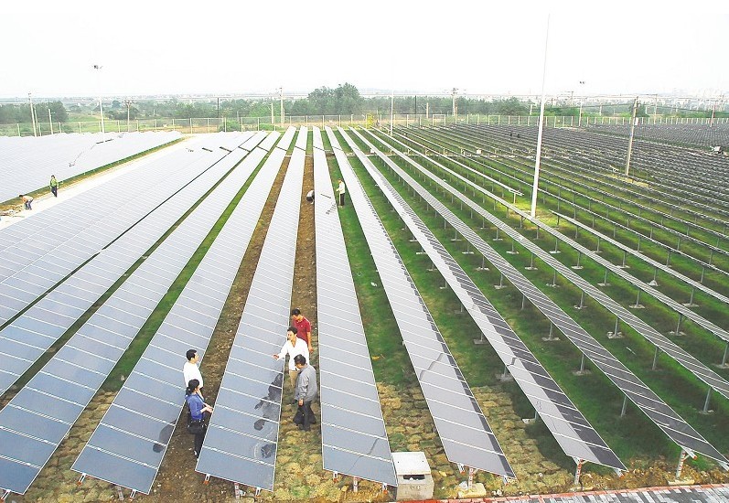 我市第一座2兆瓦非晶硅太阳能示范电站日前通过涉网部分验收,将于国庆期间并入蚌埠地区10千伏系统送电。该电站由蚌埠中源光伏电力有限公司投资建设,坐落于曹山东侧,占地160亩,铺设了46000片弱光效应好的非晶硅太阳能电池板,经过太阳能的收集,经逆变器变为交流电,由2台1250千伏安的调压变压器升压后并入蚌埠电网。据悉,兆瓦级的太阳能电站在全省仅此一座。