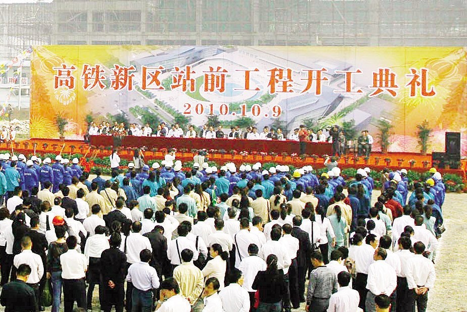 市委书记、市人大常委会主任陈启涛宣布工程开工,紧接着礼炮齐鸣,彩带飞舞,市领导和有关部门负责人走到仪式台前一起为工程挥锹奠基。