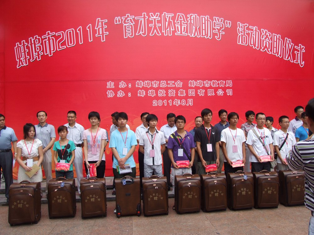 公司将本次全程助学活动定名为“蚌投集团·百名学子培养工程”,旨在帮助学子们顺利完成学业。在大学四年期间,将对100名同学每人每年给予3000元资助,并欢迎大学生利用寒暑假来蚌投集团实习;对品学兼优的毕业生,将择优招收到蚌投集团工作;对考上硕士、博士研究生的将继续予以资助,并希望毕业后回到蚌投集团工作。