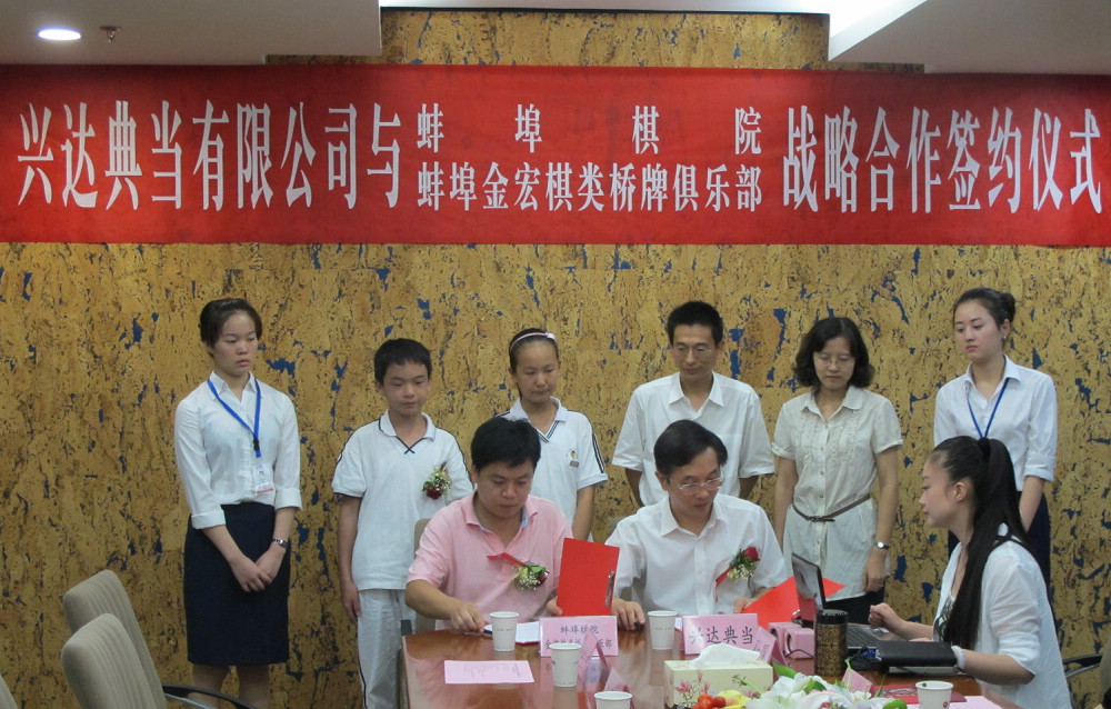 914,兴达典当有限公司与蚌埠棋院社、金宏棋类桥牌俱乐部签订合作协议。体育局副局长周青山、兴达典当总经理陈孝凯及蚌埠棋院负责人等出席签字仪式。