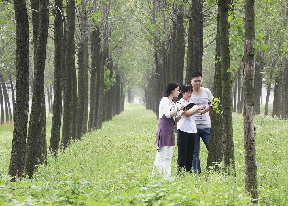 日前,兴达典当有限公司员工在淮上区现场查勘,办理林权抵押贷款业务。
