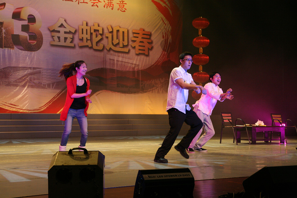 联欢会还为大家奉上了杂技、小品、魔术、模仿秀等精彩纷呈的文艺节目,特邀著名笑星郭冬临为大家表演,并穿插了幸运抽奖。联欢会现场掌声不断,一片欢腾的气氛。