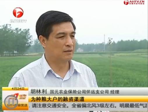 安徽电视台经济频道分别于2012年11月3日和2013年4月24日两次对国元农业保险怀远支公司服务三农的创新融资模式进行了宣传报道。怀远支公司积极开展政策性农业保险保单质押贷款业务,拓宽了农村融资渠道,助推农业规模化、产业化的发展。报道展示了企业的良好形象和服务三农取得的优秀成绩。