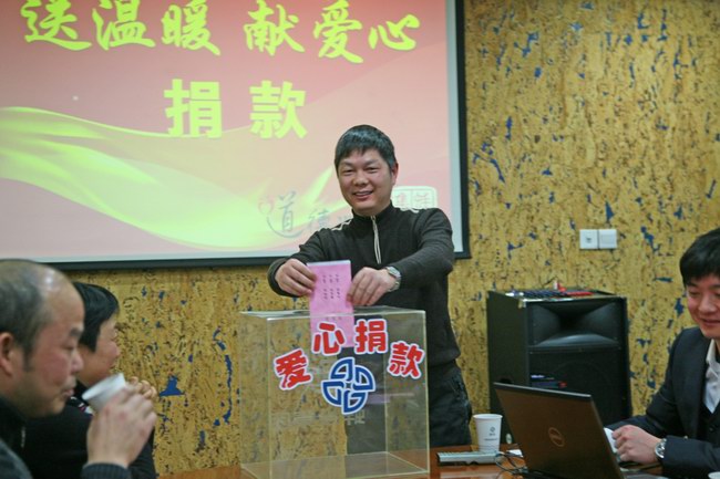 予人以爱,人予我爱。在发善心环节,随着一段温暖的音乐响起,主持人宣读了“送温暖献爱心”捐款倡议书,倡导大家奉献自己的一片爱心。活动得到了大家的热烈响应,纷纷上台捐款,大家表示会继续支持公司志愿服务事业的发展,将爱心传递的更加遥远,让社会变得更加友爱、和谐。