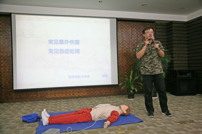 64日,公司邀请蚌埠市红十字会工作人员在投资大厦十三楼会议室作应急救护专题培训。公司本部员工、子公司安全生产分管领导及安全员参加了本次培训。