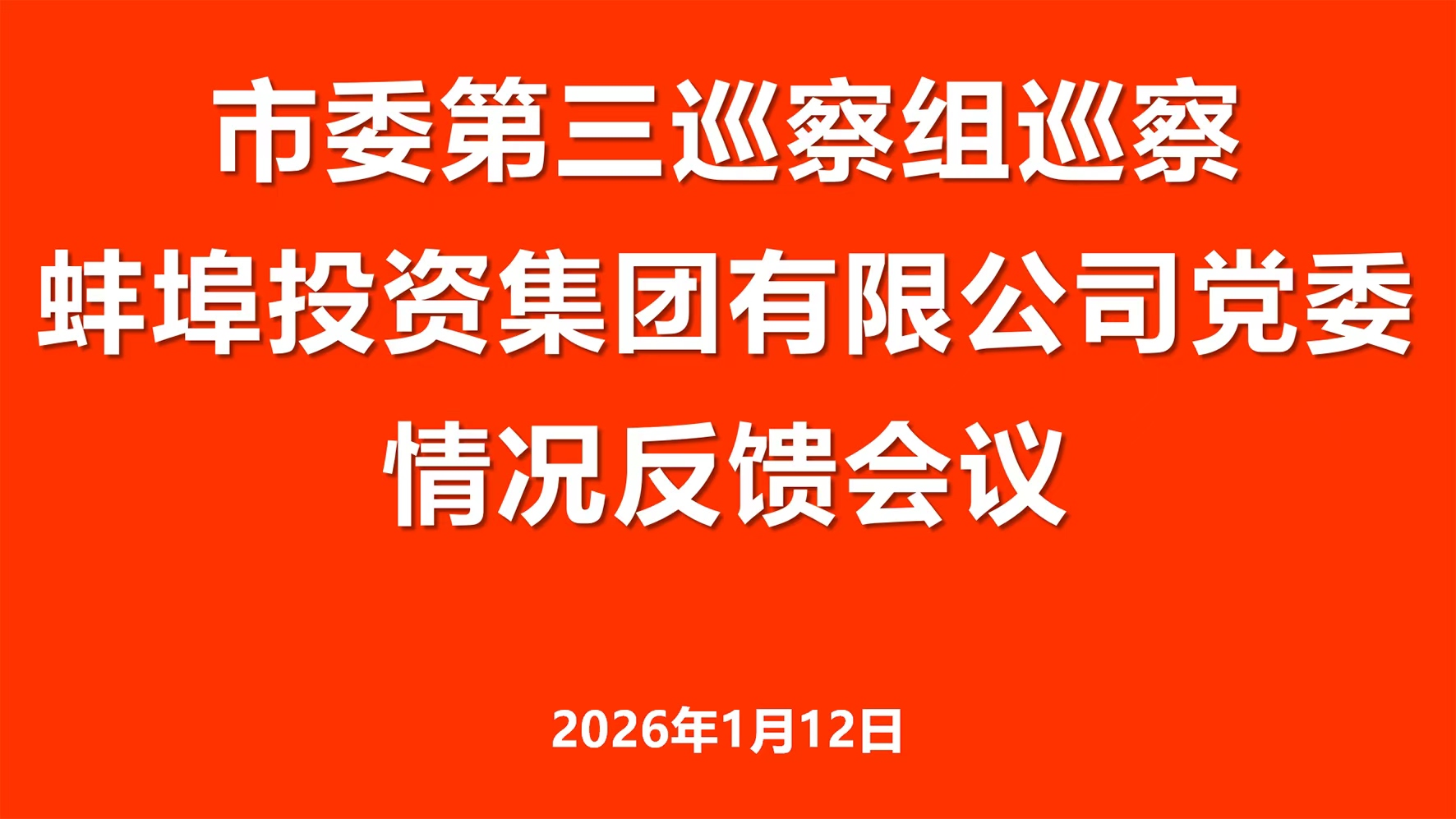 2026年1月12日下午,市委第三巡察组向蚌投集团党委反馈巡察情况。巡察组组长戚劲松代表市委巡察组分别向蚌投集...