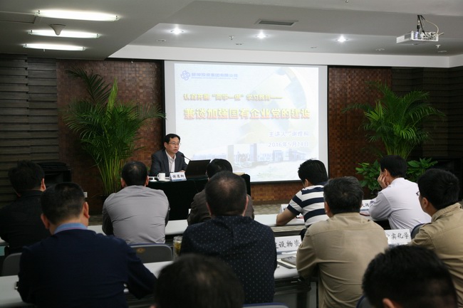 5月14日,公司邀请中央党校办公厅副主任谢煜桐作认真开展“两学一做”学习教育兼谈加强国有企业党的建设专题培训,公司本部全体党员,各子公司主要负责 人、党务分管领导,所属党委班子成员、党支部书记参加此次培训。